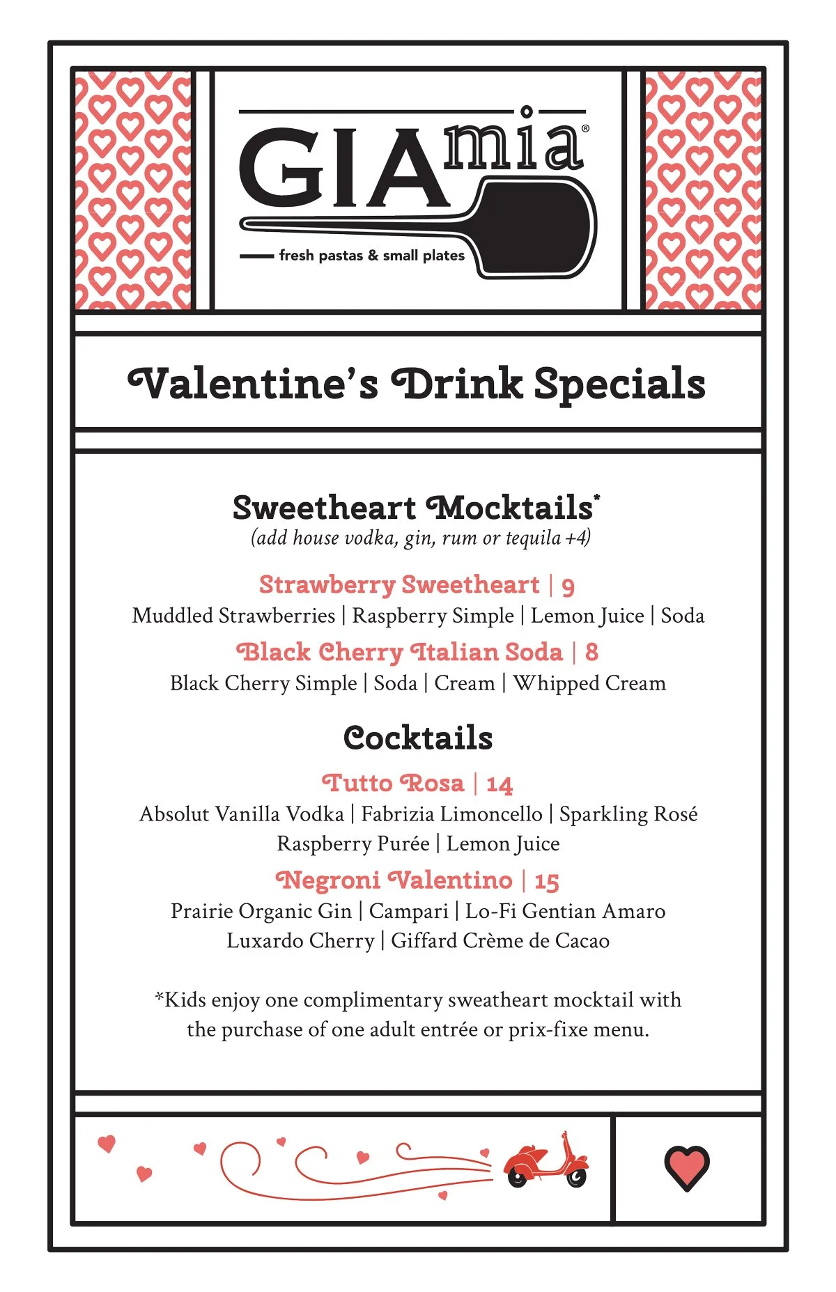 Valentine’s Prix Fixe Menu + Beverage Specials